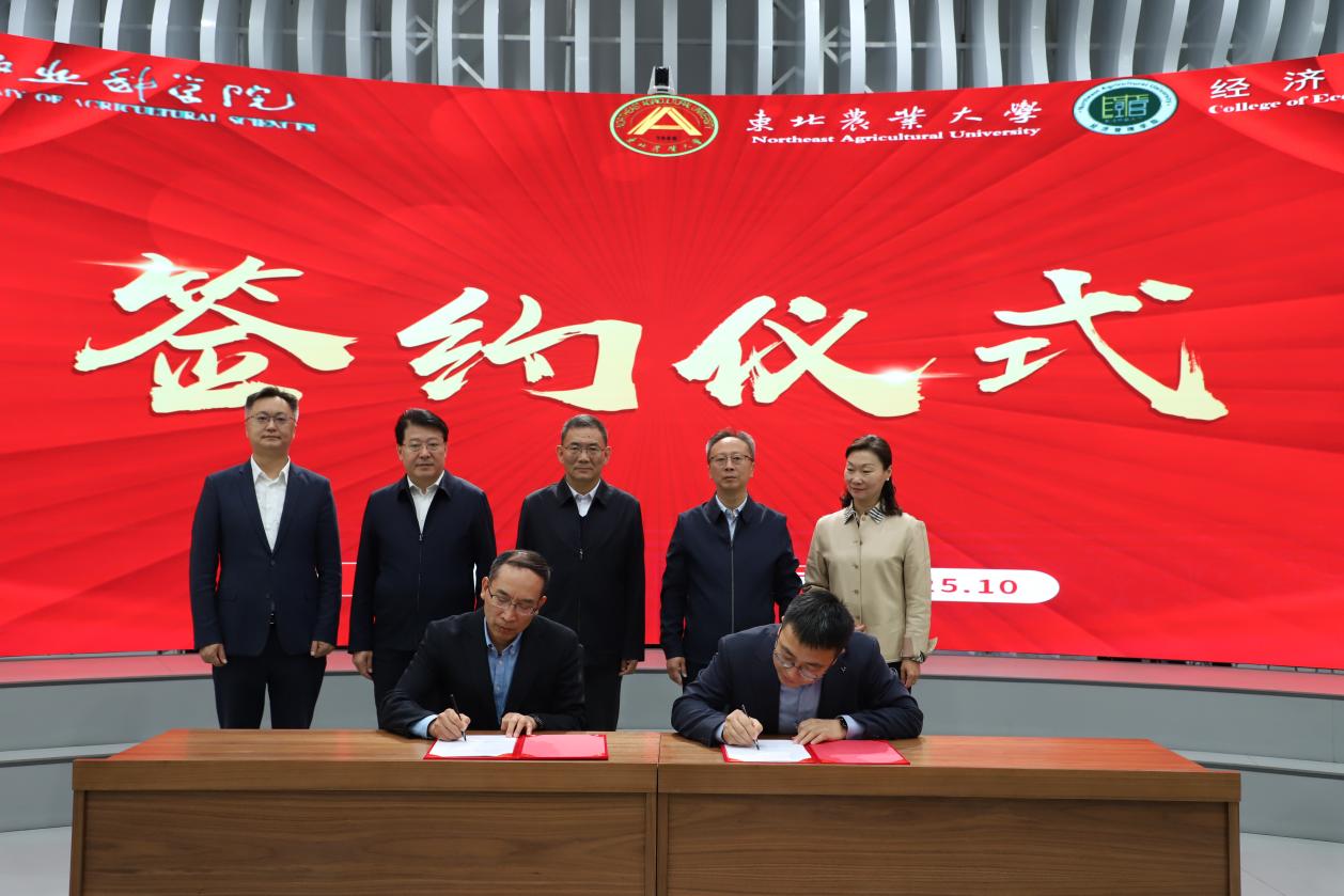 2025年10月11日,农经所与东北农业大学“乡村振兴理论与实践”课程教学合作签约仪式在哈尔滨市举行。中国农业科学院乡村振兴学院院长张合成,中国农业科学院副院长刘现武,中国农科院研究生院党委书记、乡村振兴学院书记姜梅林,中国农科院农经所所长胡向东,中国农业科学院哈尔滨兽医研究所所长步志高,中国农科院农经所党委书记、乡村振兴学院执行院长毛世平,东北农业大学副校长姜毓君、经济管理学院院长余志刚出席签约仪式。东北农业大学经济管理学院党委书记王洪亮主持签约。