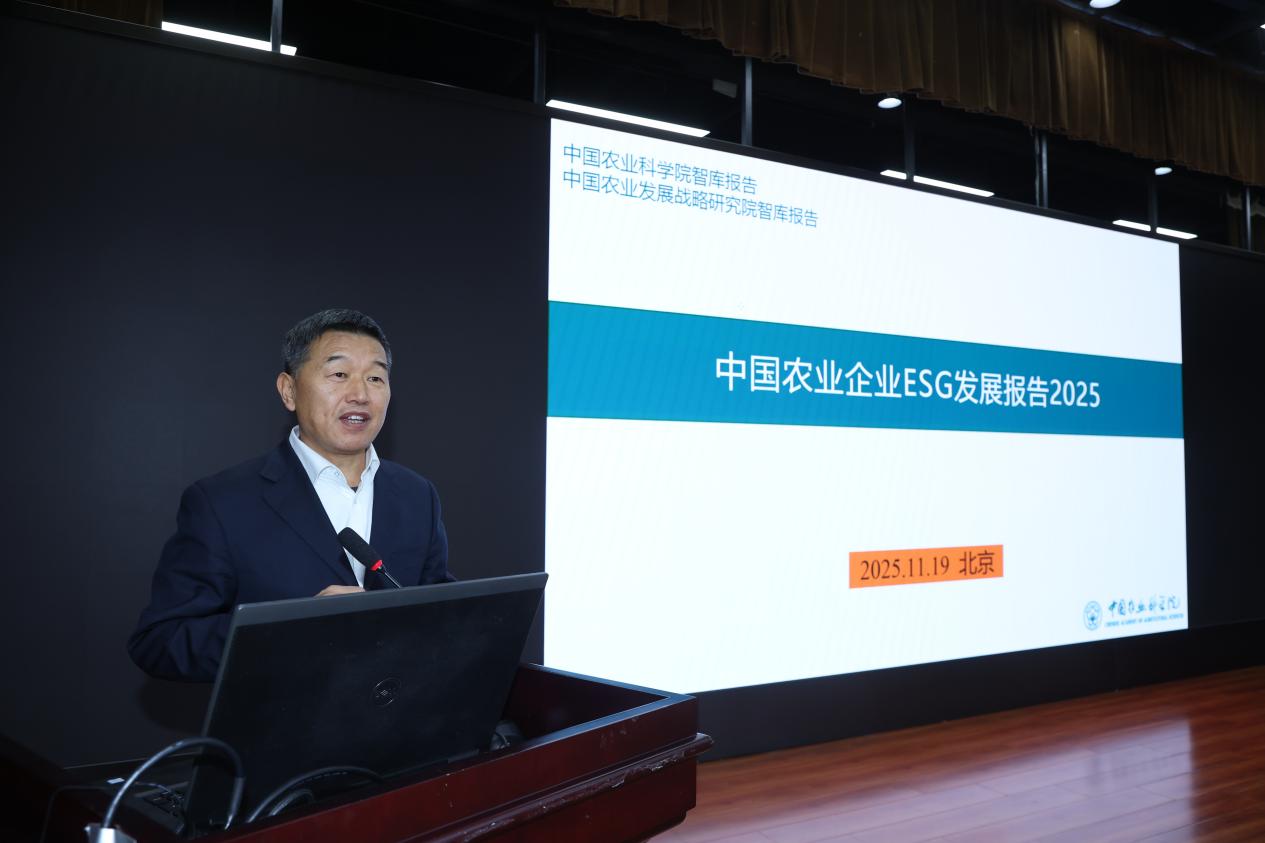 11月19日,由农业经济与发展研究所主办的《中国农业企业ESG发展报告2025》发布会暨农业企业ESG实践创新研讨会在北京举行。中国农业科学院副院长叶玉江出席会议并致辞。财政部原副部长朱光耀,原农业部副部长、中国农业经济学会会长陈晓华,第十四届全国政协农业和农村委员会委员、国务院原副秘书长郭玮,第十四届全国政协农业和农村委员会委员、农业农村部原副部长马有祥,世界经济论坛热带雨林联盟高级顾问朱春全对报告进行了点评。中国农业科学院农经所所长胡向东主持会议。
