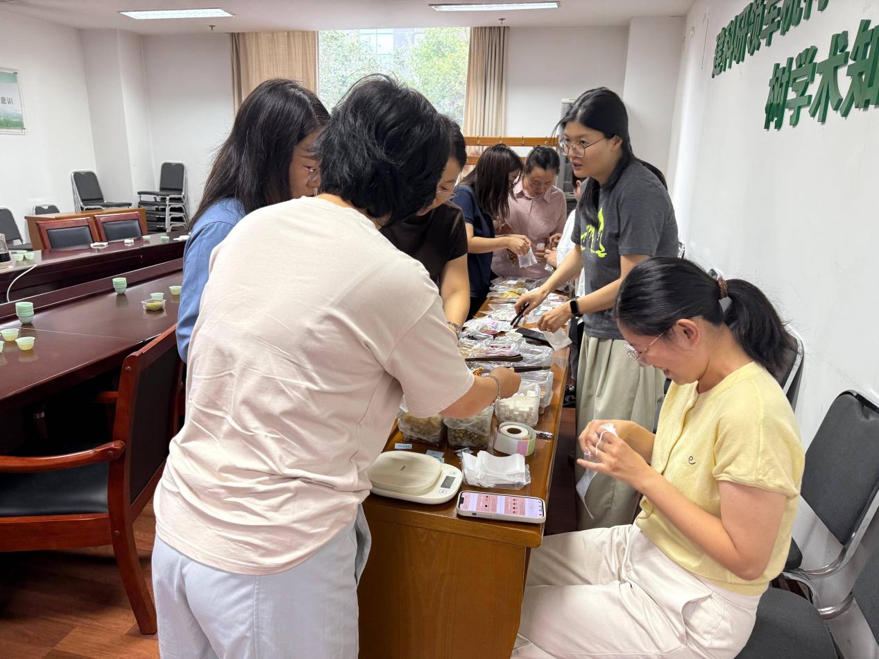 活动首先邀请国际农业经济与贸易团队的曹芳芳副研究员为大家科普茶文化知识。近年来,该团队一直致力于农业非遗文化的保护与传承,曹芳芳副研究员更是对茶文化有深入的研究。活动现场,她围绕茉莉花茶展开生动分享,从其千年渊源传承、独特窨制工艺,到蕴含“清雅致远”的文化寓意与古今品饮智慧等方面,带领大家沉浸式走进茉莉花茶的芬芳世界,在领略传统茶饮技艺之妙与文化底蕴之深的同时,体会古人制茶、品茶中的生活智慧,也在茶香浸润中悄然提升生活品味与健康意识,为后续手作花茶茶包赋予了更深厚的文化意涵。