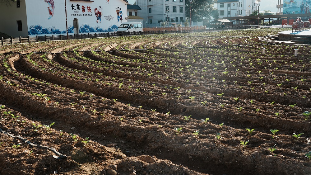 农村生活污水经过无害化处理后,通过毛细管浸润和土壤的渗滤作用引入农田实现循环利用